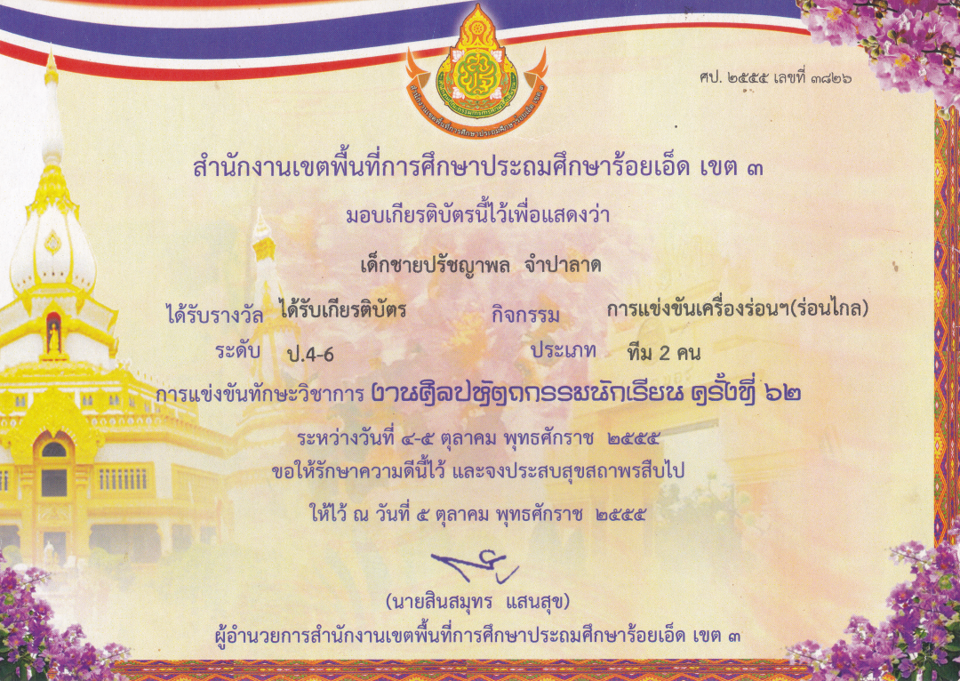 - ชั้นประถมศึกษาปีที่ 2 – 3 โรงเรียนมหาชนะชัย 2551 – 2553