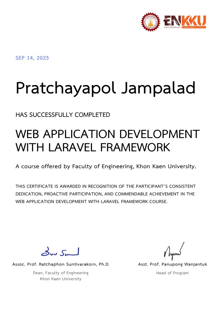 - ปริญญาตรี คณะวิศวกรรมศาสตร์ สาขาวิศวกรรมคอมพิวเตอร์ มหาวิทยาลัยเทคโนโลยีราชมงคลอีสาน วิทยาเขตขอนแก่น 2564 – 2568